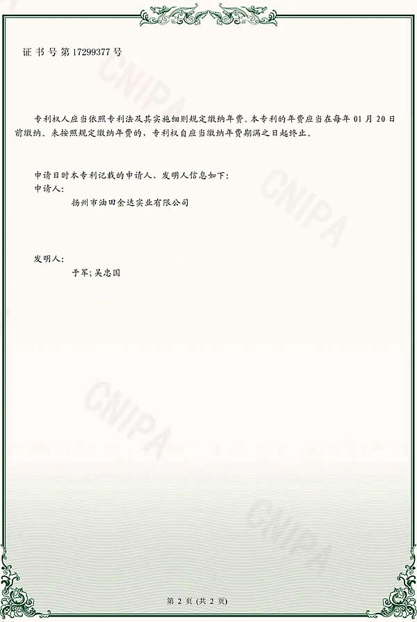YANGZHOU OILFIELD JINDA INDUSTRIAL CO.,LTD.